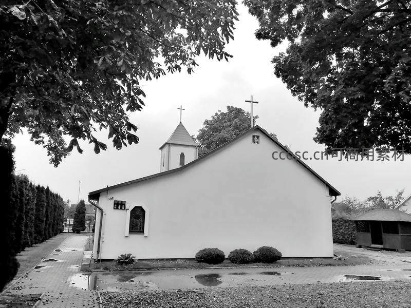 黑白滤镜下的乡村小教堂静谧安详