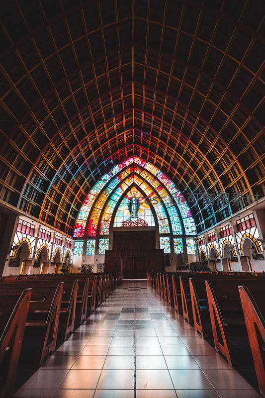 教堂内部彩色玻璃穹顶