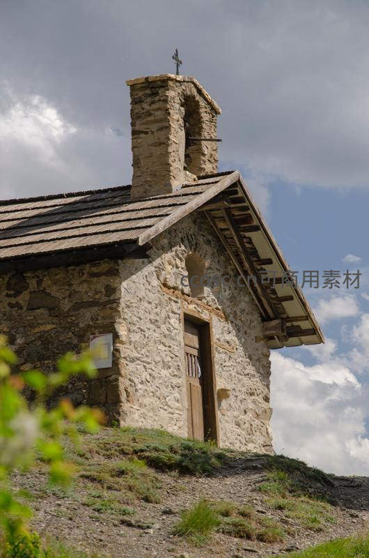 古老石砌小堂屹立山坡蓝天之下