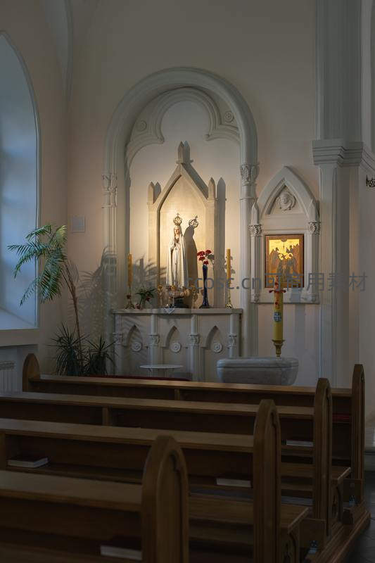 教堂内圣母像祭坛静谧场景