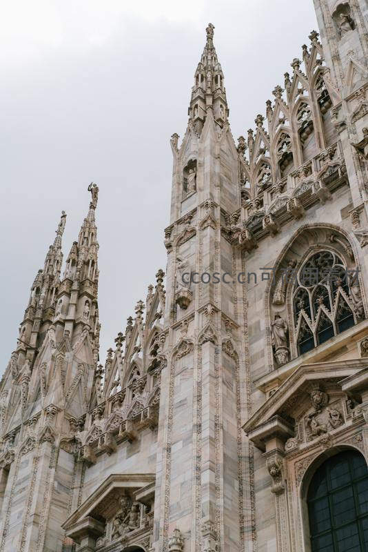 米兰大教堂尖塔与繁复雕刻特写