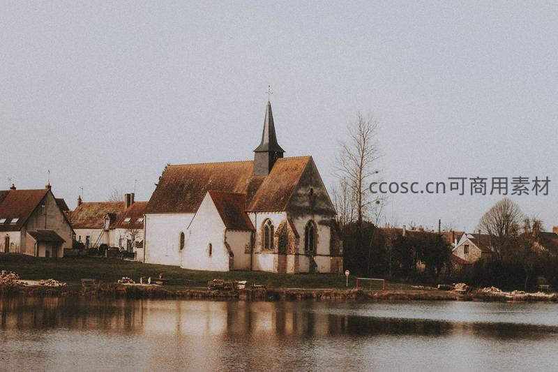 湖畔古教堂倒影如画