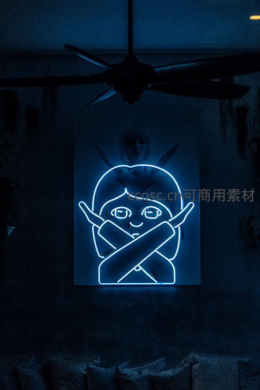 蓝色霓虹灯下的神秘肖像