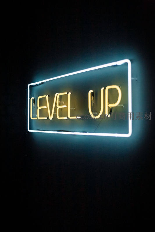 黑色背景下,黄色“LEVEL UP”文字被白色边框霓虹灯包围,简洁有力,适合游戏室或创意办公空间的激励装饰。
