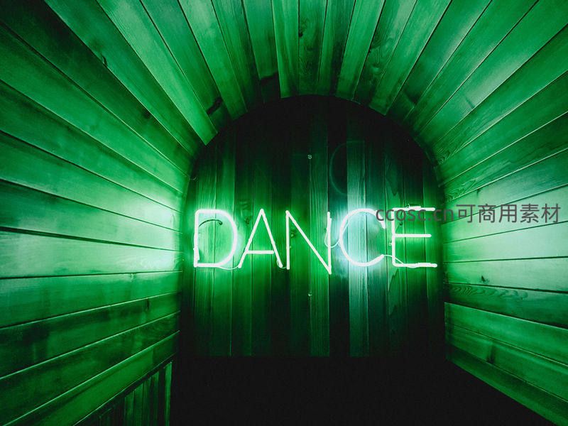 绿色霓虹灯照亮木质隧道,DANCE字样醒目