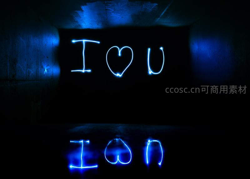 蓝色霓虹灯管拼出我爱你字样