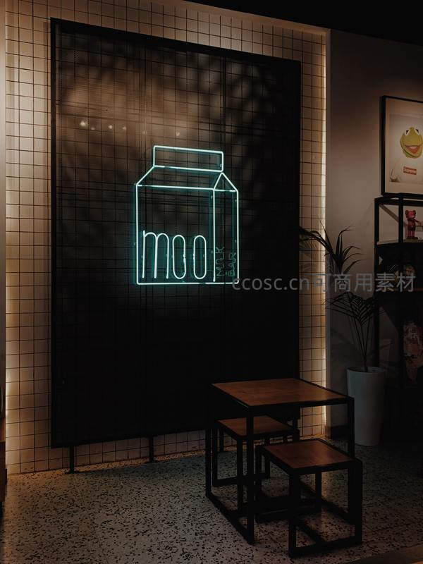 牛奶盒霓虹灯饰点亮简约咖啡馆