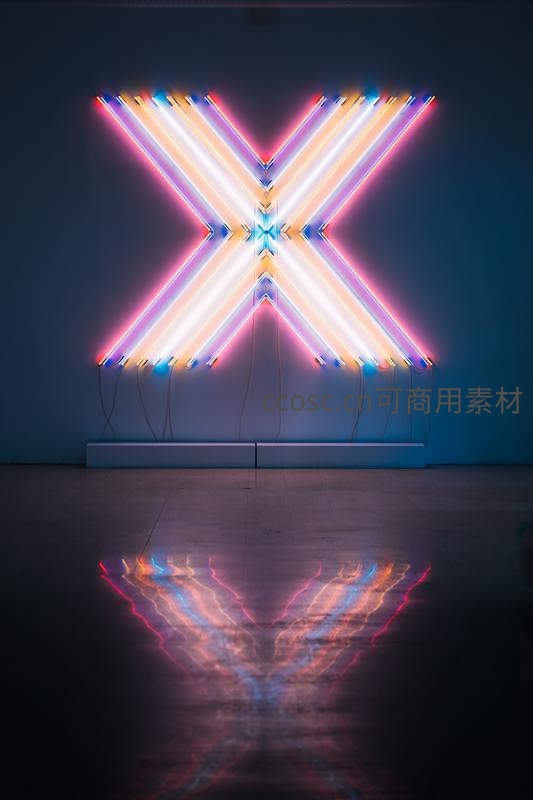 霓虹X形灯饰在暗室中绽放炫彩光芒