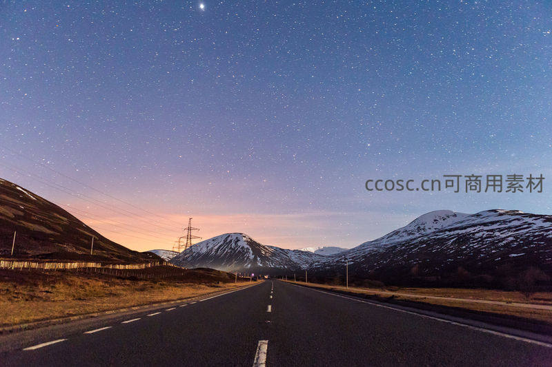 星空下的公路,雪山为伴夜色如画
