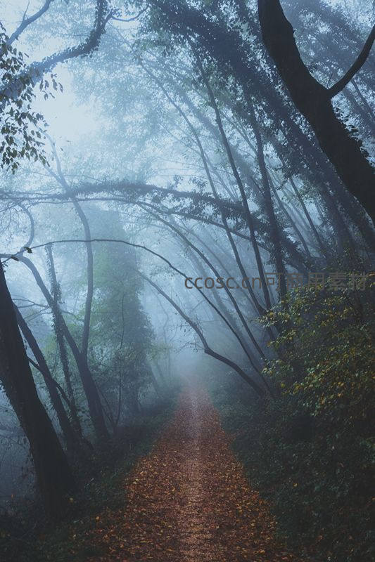 薄雾笼罩的森林小径