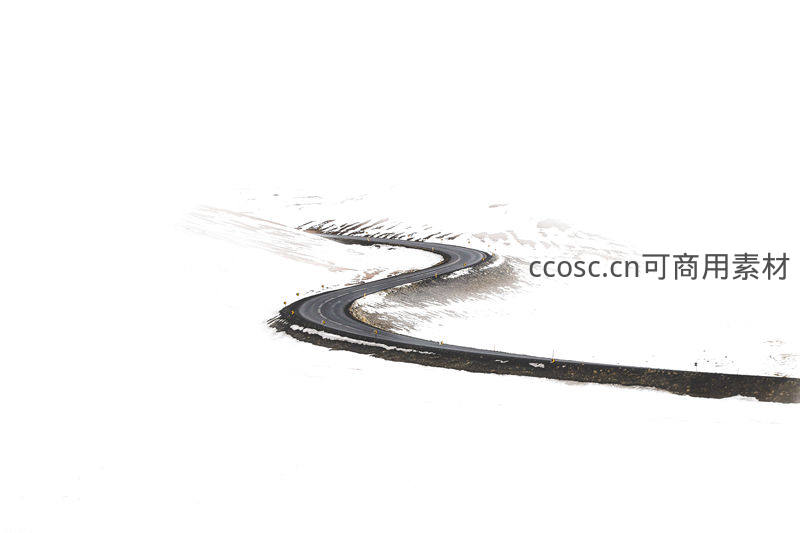 雪原蛇形路蜿蜒,黑白对比如画卷