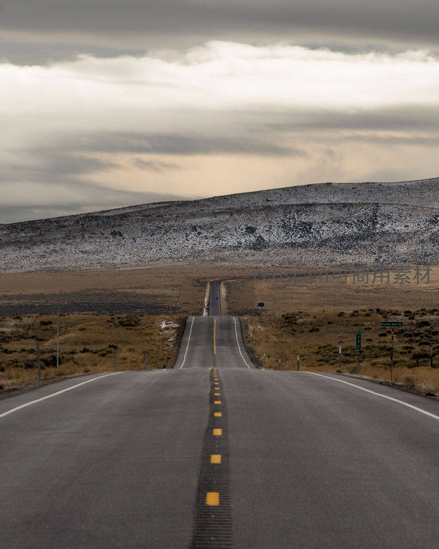 荒原公路通向远方雪覆山丘