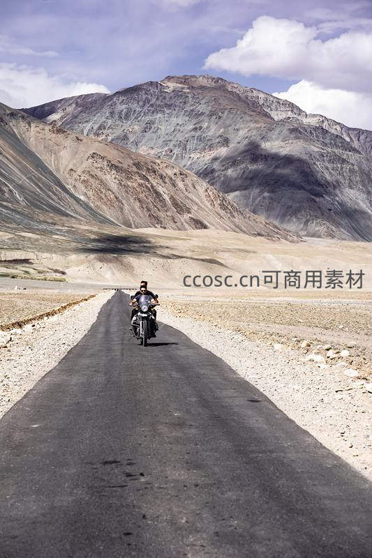 摩托骑士驰骋荒漠峡谷公路
