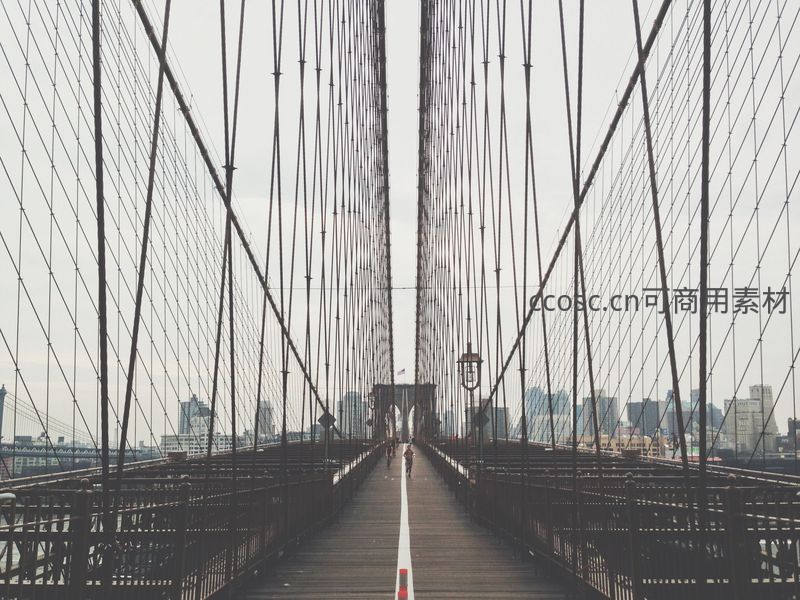 布鲁克林大桥的对称结构与行人剪影