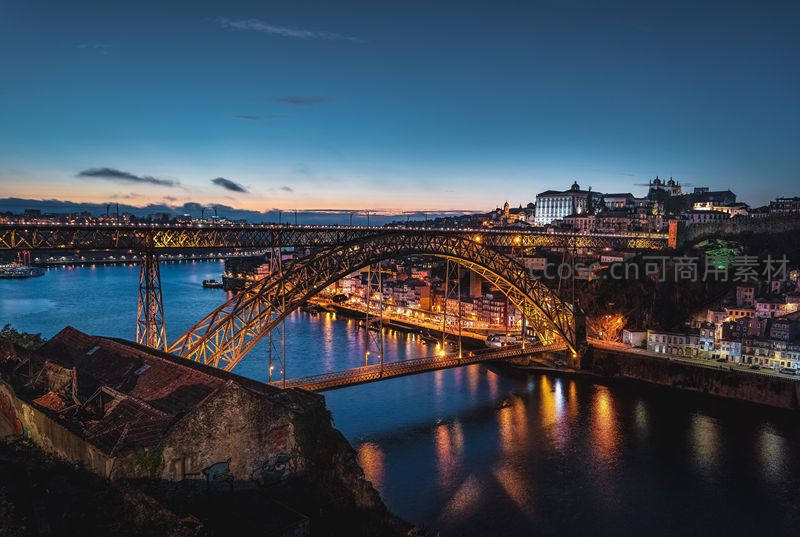 黄昏时分灯火辉煌的拱桥