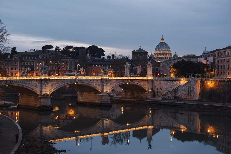 黄昏时分罗马圣天使桥与圣彼得大教堂