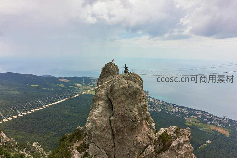 一座惊险的悬索桥从陡峭的山峰顶端延伸出去,脚下是连绵的绿色山谷和蔚蓝的大海。站在峰顶十字架旁,可俯瞰壮阔的海岸风光,体验征服自然的豪迈与宁静。