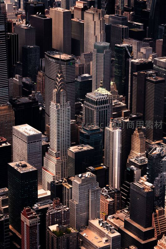 高空俯瞰纽约曼哈顿密集林立的摩天大楼