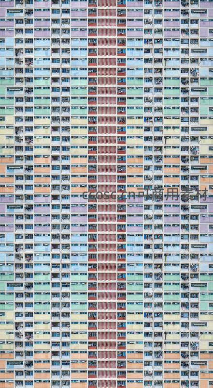 彩色密集住宅楼外墙几何图案