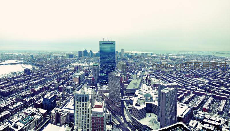 雪后城市全景航拍,高楼林立如画