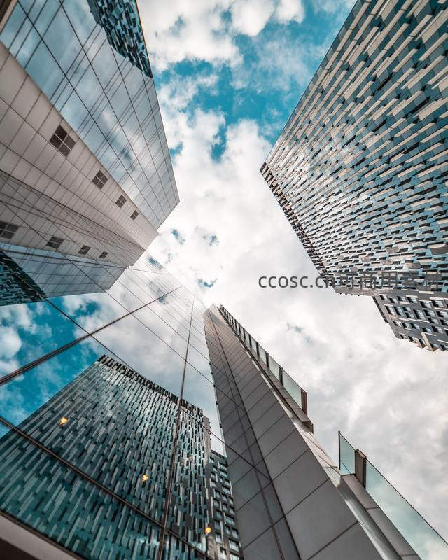 多栋摩天大楼环绕形成的天空之镜
