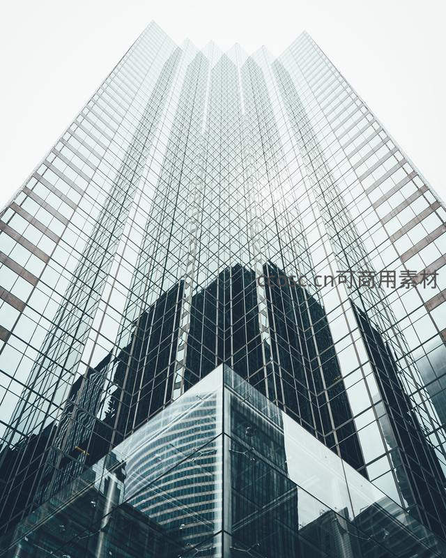 仰视视角下玻璃幕墙大厦的几何美学