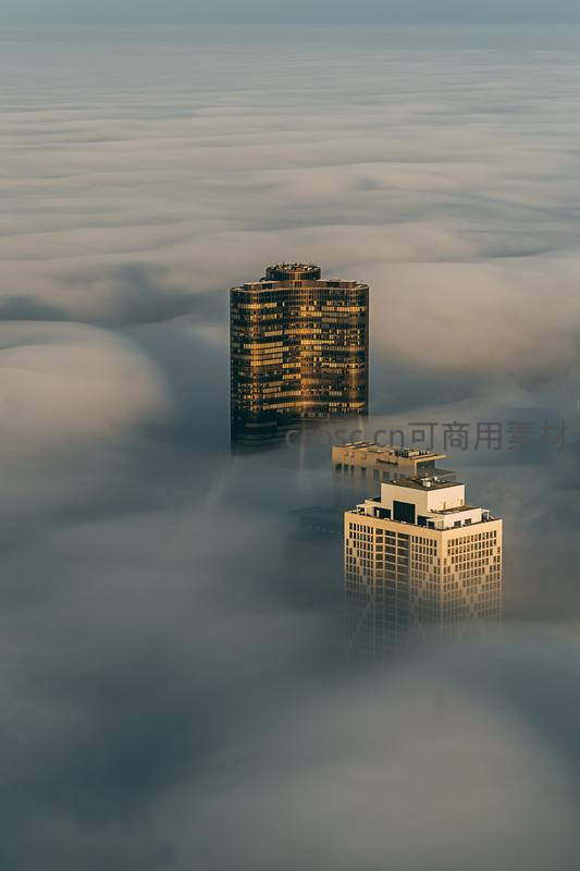 云端楼宇如海上孤帆静谧矗立