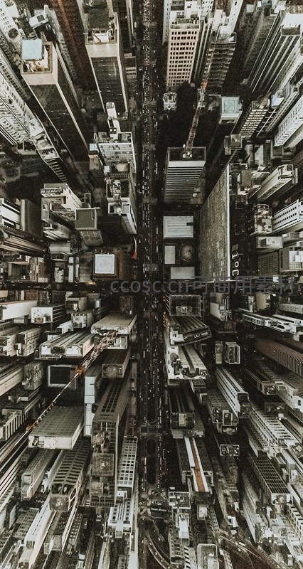 鸟瞰城市峡谷高楼林立车水马龙