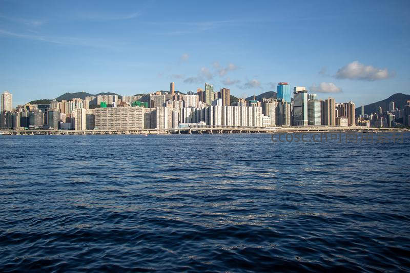 维多利亚港对岸香港天际线全景