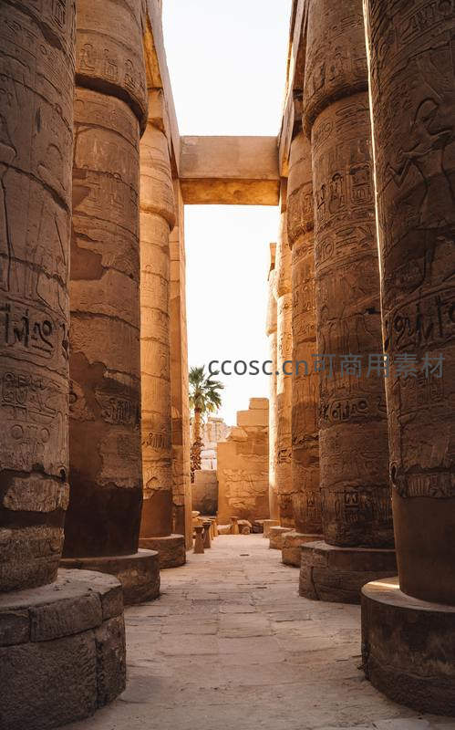 古埃及神庙巨柱廊道阳光穿透