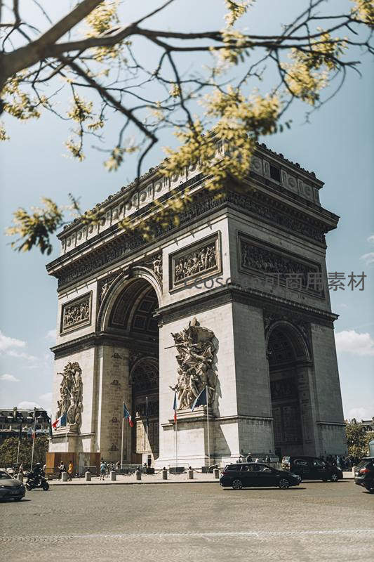 凯旋门雄伟庄严,枝叶轻拂历史荣光