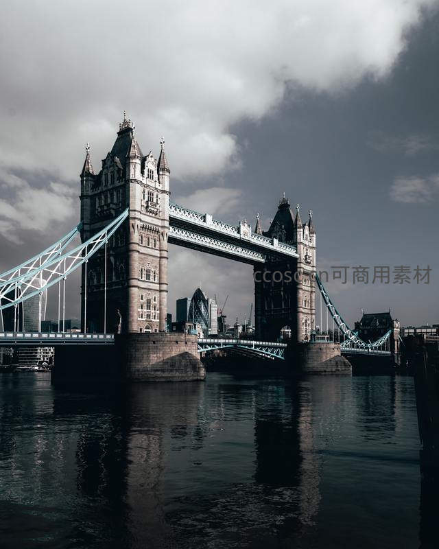 伦敦塔桥在阴云密布下的雄伟倒影