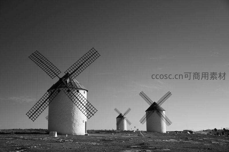 黑白经典风车群落,静谧旷野中的历史印记