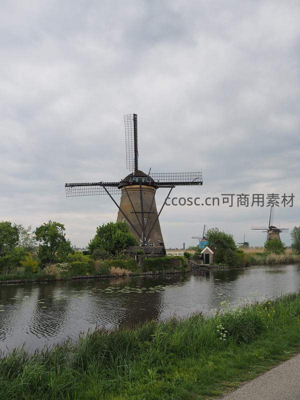 运河边静谧风车,绿树掩映古典风情