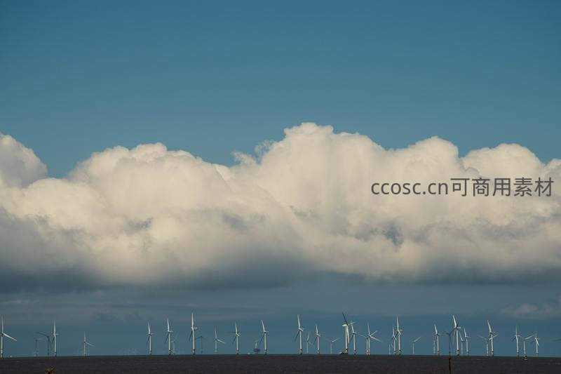 远眺海上风电场云层低垂气势恢宏