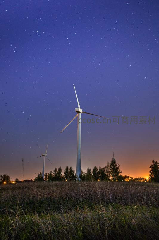 星空下的风车静立田野