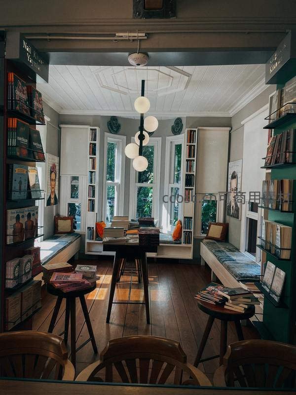 温暖的阳光透过大窗洒在木质地板和书架上,营造出静谧舒适的阅读氛围,是理想的文艺打卡地。