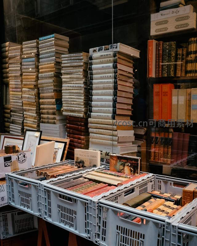 橱窗里的书山:层层叠叠的书籍如雕塑般陈列街头