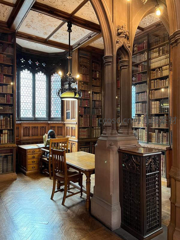 古典图书馆内,雕花拱顶下静读时光