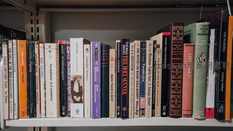 在书架上的英文书籍图片