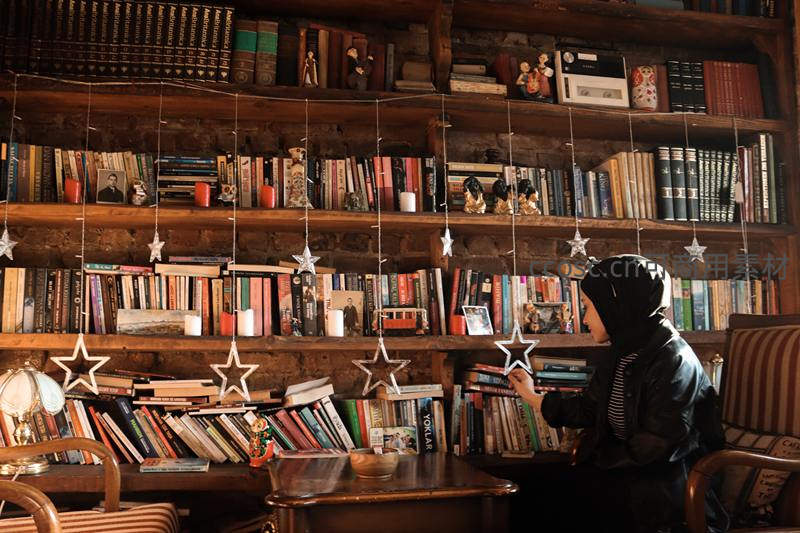 复古书店中,孩童在星形装饰下挑选心爱图书