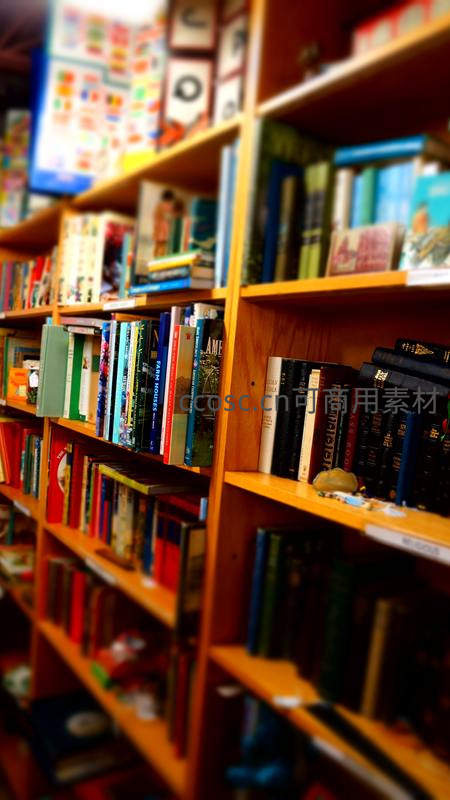 聚焦于木制书架上的各色图书封面与书脊,柔和虚化背景突出书籍细节,传递浓厚的文化气息与知识沉淀感。