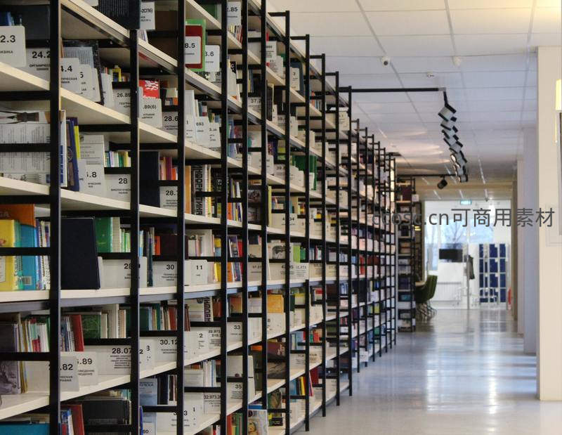 黑色金属书架长廊通向采光区