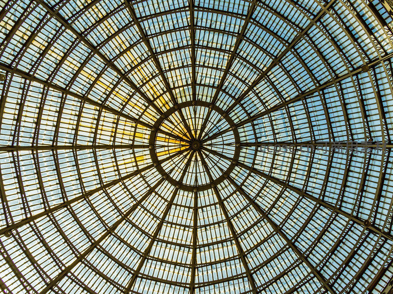 玻璃穹顶结构从下向上仰望的对称美学