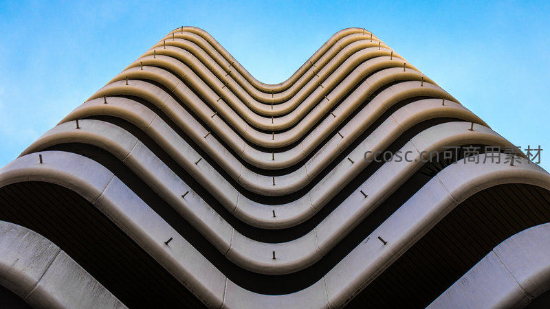 波浪形建筑立面在蓝天下的韵律之美