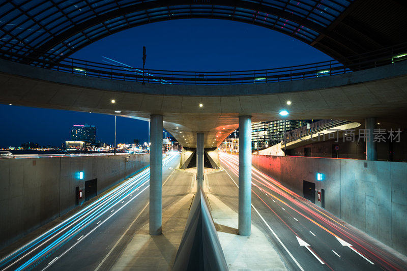 高架桥下车流如织夜色璀璨