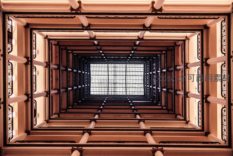 古典建筑中庭的垂直纵深构图