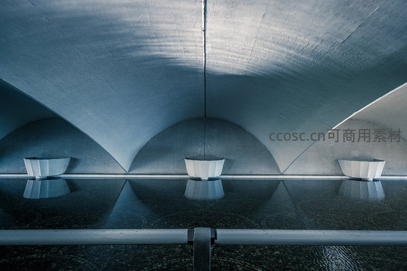 混凝土拱廊倒影,静谧水池中的建筑诗篇