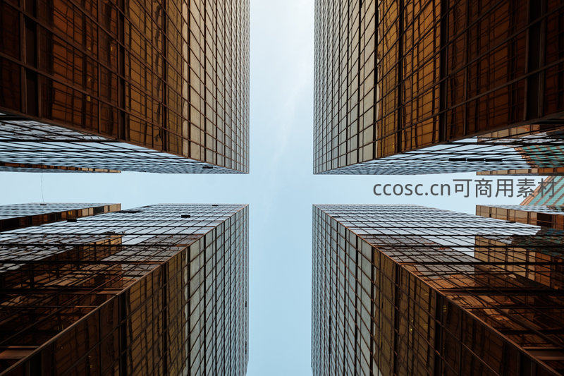 仰望摩天大楼构成的都市峡谷