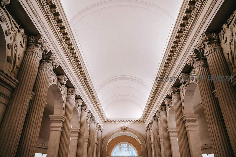 华丽穹顶下古典柱廊的对称之美